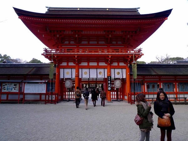 玉依姬撿到「朱紅」的箭而懷了「別雷大神」,所以這裡的鳥居、樓門也都是朱紅色的(我掰的!)