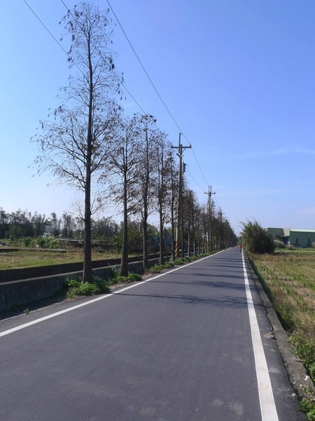 中山路252巷車子很少,旁邊都是稻田,此時正值收割期,陽光一曬,空氣中飄散著淡淡的稻香,賞著藍天,跟著聳立的落羽松前進,這景色真教人心曠神怡!