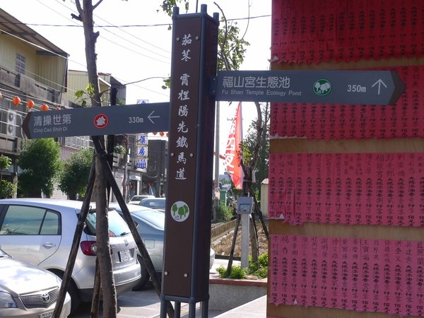 沿著小路一直往下騎,跟著「營盤古墓」指標前進,我們始終沒有找到乾隆時代留下的墓碑,但是意外接上回家的路,我們於是提前結束行程,下次再來完成「桃園八德.茄苳霄裡陽光鐵馬道」全程。