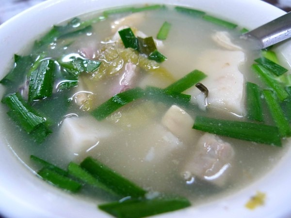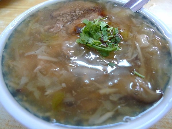 首先上桌的是招牌的「粿仔湯」,料超多:油蔥粿、酸菜、韮菜、豬腸......,而且湯頭超好,剛開始看到一碗要價50元,有點搶人,吃了以後覺得再貴一點也願意光顧。