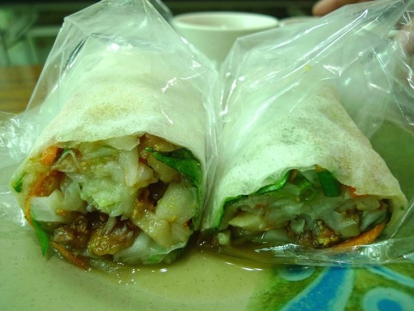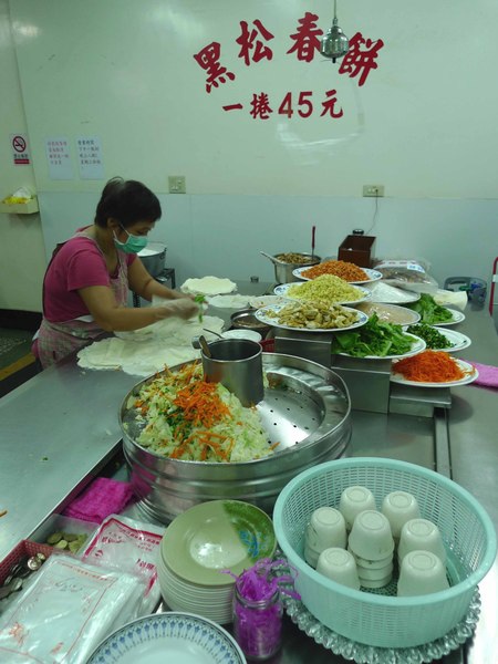 詢問正在包春捲的阿姨,可不可以照相,阿姨很客氣的說:唉呀!沒什麼料了,照相起來不好看。
