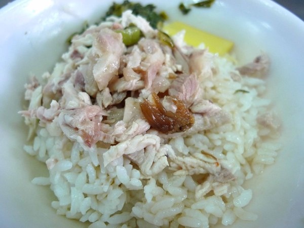 雞肉香而有彈性,不像在北部吃的那樣乾澀無味;飯粒夾著雞油香和鹹味,我們兩人搶食扒完,終於知道「嘉義雞肉飯」為什麼可以遠近馳名,原來以前吃的都只是冒名的「嘉義」雞肉飯。