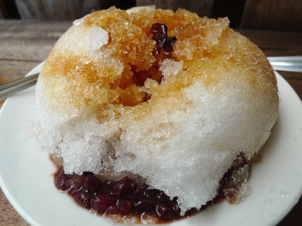 Q彈不硬的湯圓加上自選的其他配料,蓋上粗粗的挫冰,淋上味道很香很濃的蕃薯糖漿,這糖漿怎麼這麼特別,真是絕品啊?!