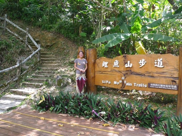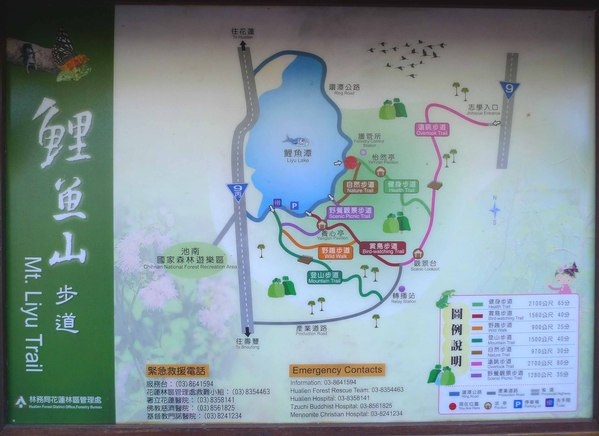 我們把車停在遊客中心前方的停車場,沒想到那麼多個登山口都在我們的正對面,也就是說~我們不只要征服鯉魚山,也會環繞鯉魚潭一周,太陽好大,我不想啊~!