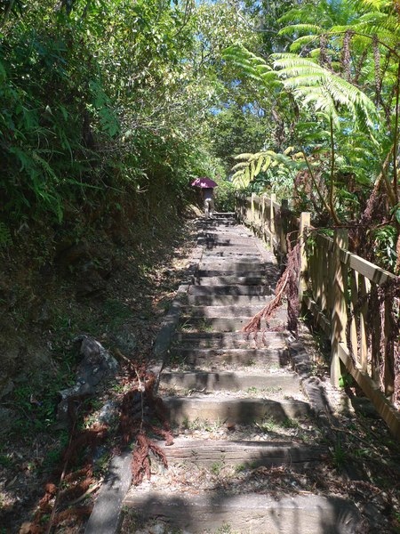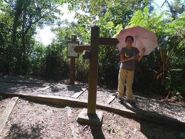 在兩支小雨傘的地方老公選擇右轉~從「賞鳥步道」下山,這條路比較舒服,空氣有在流動的感覺,涼快多了!