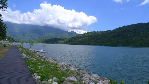 沿著環潭公路欣賞「鯉魚潭」和「鯉魚山」景色~哪有像「狀似鯉魚蜷臥」?完全看不出來