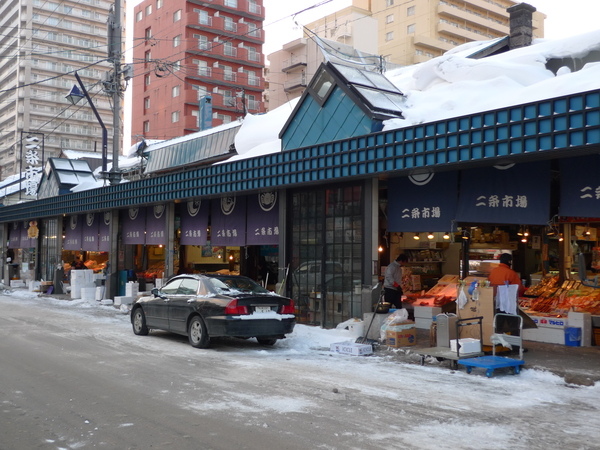 往南就是熱鬧的「二条市場」,早上可以到朝市吃各種海鮮丼飯當早餐。