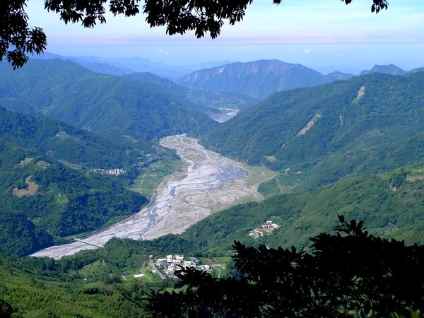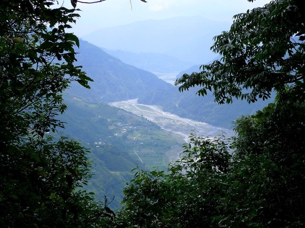 從丸田砲台下望大安溪谷,得以窺出當年日本人如何利用這座砲台的優勢火力控制北勢群部落的泰雅族人。
