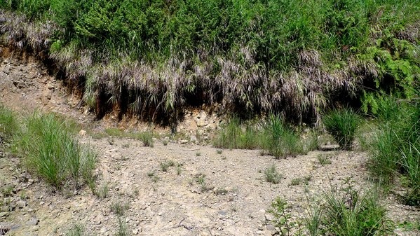 這一段「戰備道」上曾經設立「疊石工事」和「壕溝」,現在只剩遺跡。