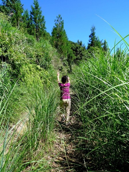 本來打算繼續前進,以登頂為目標,可是芒草越來越密越長,割得傷痕累累,決定放棄,還是回頭是岸。