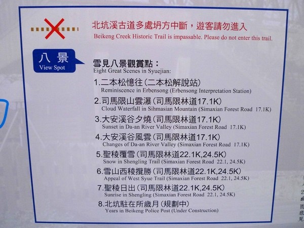 進去遊客中心參觀一番,看到「雪見八景」的介紹,決定沿著遊客中心正前方的林道,到24.5KM眺望聖稜美景。