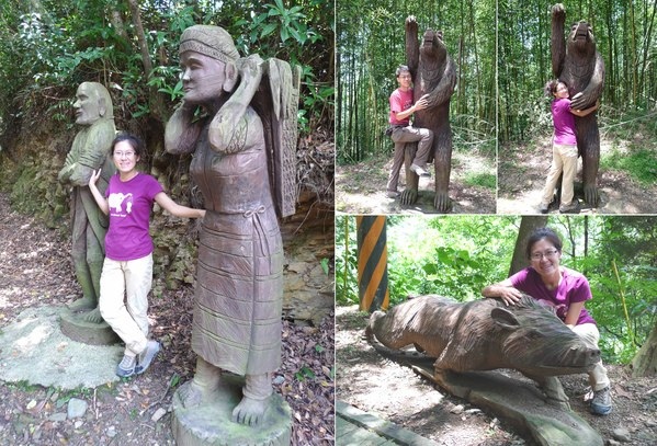 這一條步道叫做「二本松步道」,通往二本松解說站,步道剛開始立著幾尊大型木雕。