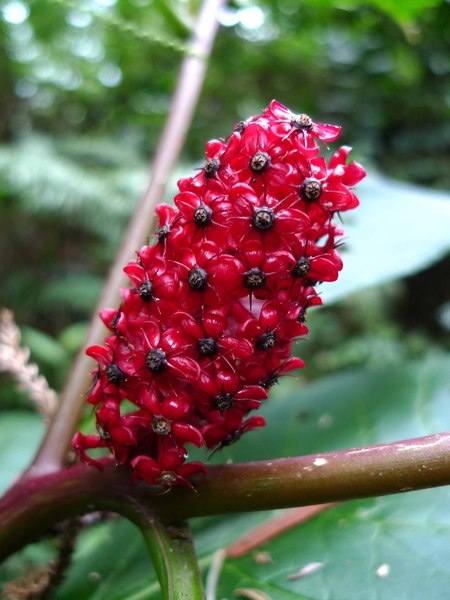 紅花總狀花序的「日本商陸」現在正值花期,步道上隨處可見。