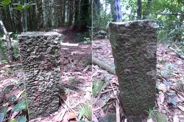 三角點旁邊另有一根較高的石樁,一面寫著「第三十五號 樟林地界」,另一面字跡模糊,仍隱約看到「大正十....年.......建設」字樣。
