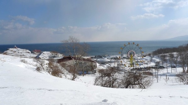 雖然展望台上可以遠眺小樽市街景色,景致非常棒,但是積雪的海邊,北風呼呼地吹,感覺非常蕭瑟寂寥,還是夏天來比較舒服。