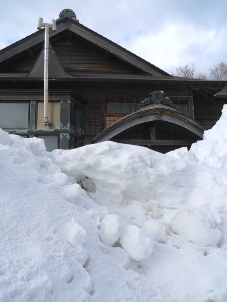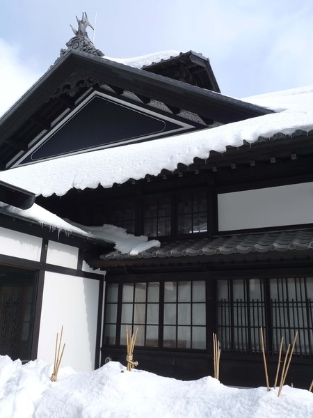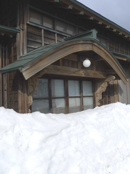 雖然厚厚的積雪把房子淹沒了一半,但是仍然看得出百年木造建築細緻的工法。