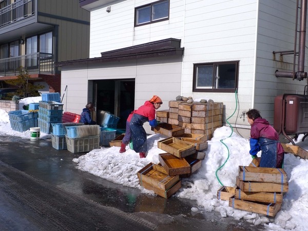 離開老街,彎進住宅區的巷子裡,寒冷的冬天,當地人仍然忙碌地從事著漁業工作。