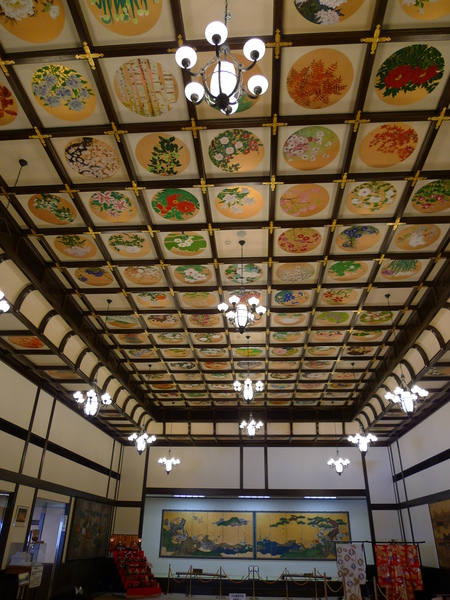 天井上鑲著100幅以花為主題的不同畫作,真是精緻又壯觀。