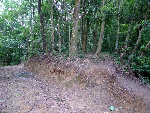 從樹林中小徑走出,接到產業道路,繼續上坡。