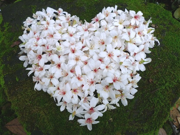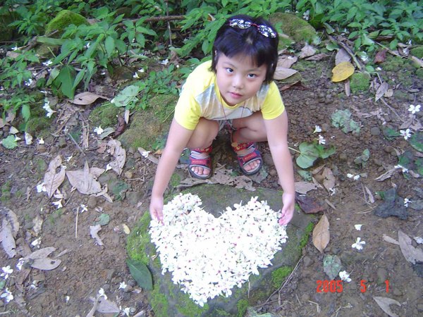 想起五年前(2006年)桐花季時,融融也曾在此留下油桐花的心心相印,心還是一樣大,但是小融融長大好多!