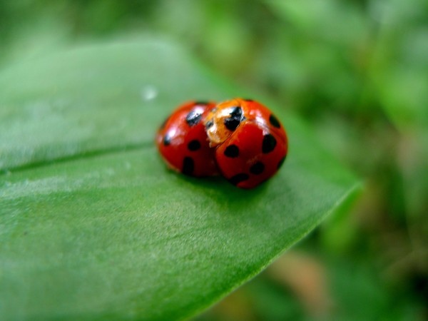 樹葉上顏色鮮豔的小蟲,紅配綠,真美麗!