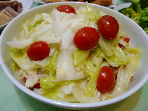 炒高麗菜~應今天另一位壽星~寬寬~的要求,加了番茄,果然好吃!