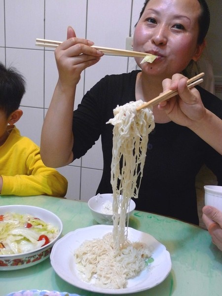 要「抽壽」~~麵線不能夾斷,抽得越長,壽星就活得越長,每個人都要「抽」一次,