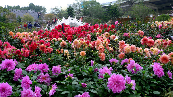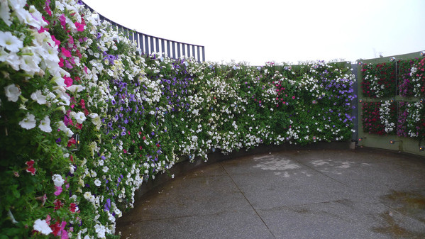 ↓造型花牆區在爭艷館前廣場,波浪型的立體牆面上重滿了色彩繽紛的花朵。