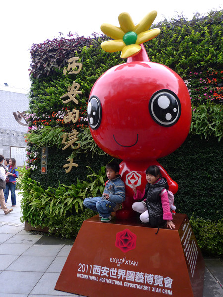 ↓西安庭園前面站著2011年西安世界園藝博覽會的吉祥物。