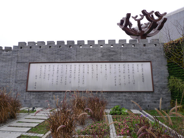 ↓西安庭園裡聳立著高大的古城牆,牆面的文字是漢書的作者~班固的西考賦。