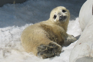 2011/3/26出生一隻的「ヒカル」,從官網中轉貼一張牠的照片,看看斑紋海豹的「Baby- face」。