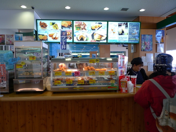 一個肉包、一份雞米花、一串三顆的馬鈴薯球,都是¥250円,外加一片起司天婦羅¥150円。