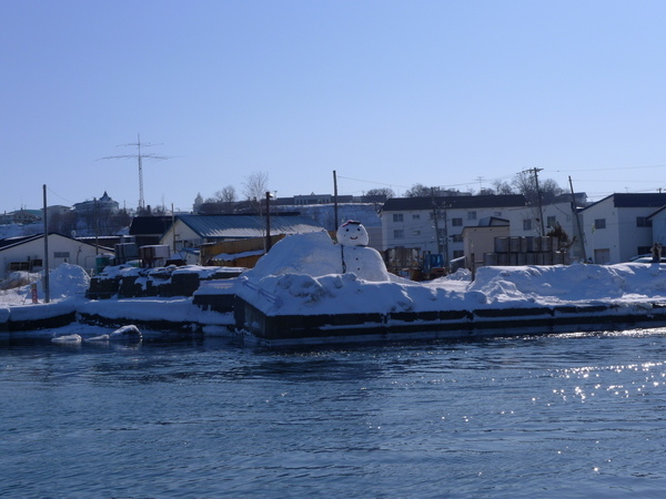 ↓12:30準時出航,我們到底層的戶外區欣賞航行風光,岸邊可愛的大雪人微笑歡送我們。