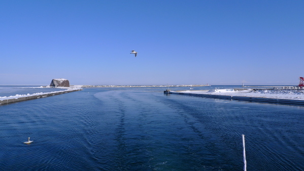 船行離開這兩座燈塔之後,就真正離開內港,進入「鄂霍次克海」了。