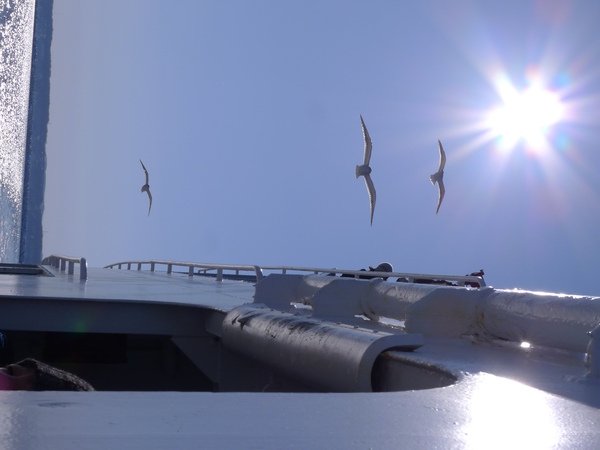 ↓我們一邊賞景,一邊享用午餐,貪吃的海鷗還以為我們要餵牠們吃飯,一直跟著,而且很兇哦!