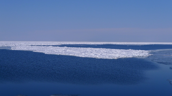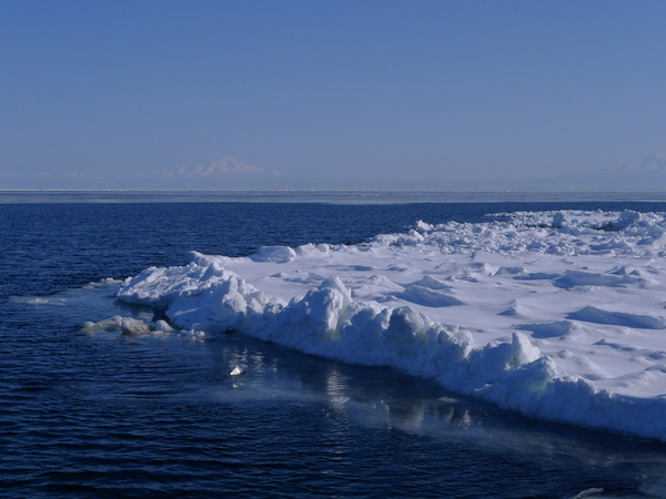 然後順流南下,迅速增長,形成這片長達1000km的「鄂霍次克海」流冰帶。