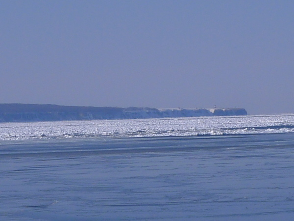 ↓回瞰厚冰區與「能取岬」,上面的燈塔隱約可見。