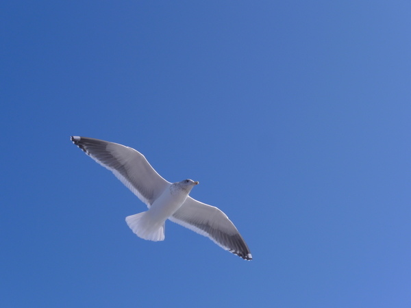 ↓藍天下的黑脊鷗,想起「天地一沙鷗」中追求理想的「岳納珊」。
