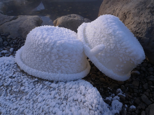 ↓溫泉旁邊的樹枝上也結了一層霧冰。