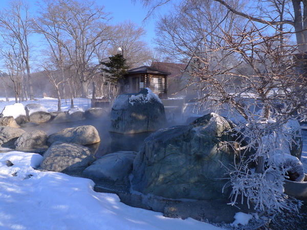 在「然別湖冰上村」時,老婆沒有體驗到露天風呂,所以這裡就決定讓老婆體驗,我來專心拍照。