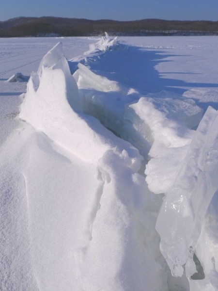 ↓走沒多久,神往已久的『御神渡』就這麼活生生、近距離地出現在眼前。