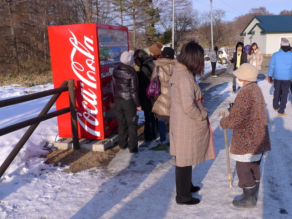 我們正好遇到渡部奶奶從屋裡走出來,她說這台機器是她收入的唯一來源,請大家來這裡欣賞丹頂鶴之餘,也不吝多投幾瓶飲料解解渴,老奶奶就能把自己和鶴鳥照顧得更好!