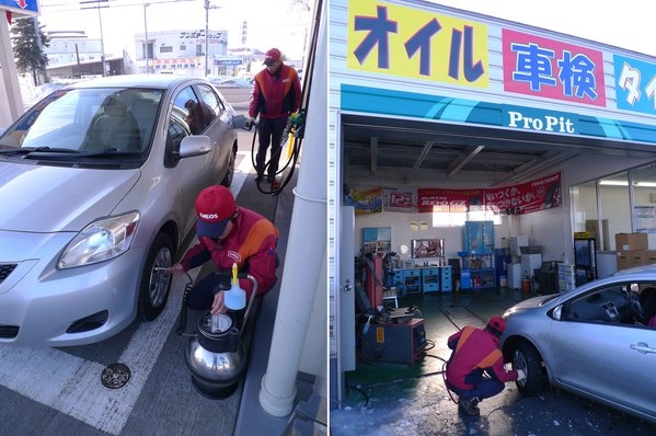 ↓ENEOS加油站的服務人員很認真的幫我檢查胎壓,在這麼冷的天氣下,非常感謝他們的服務精神。