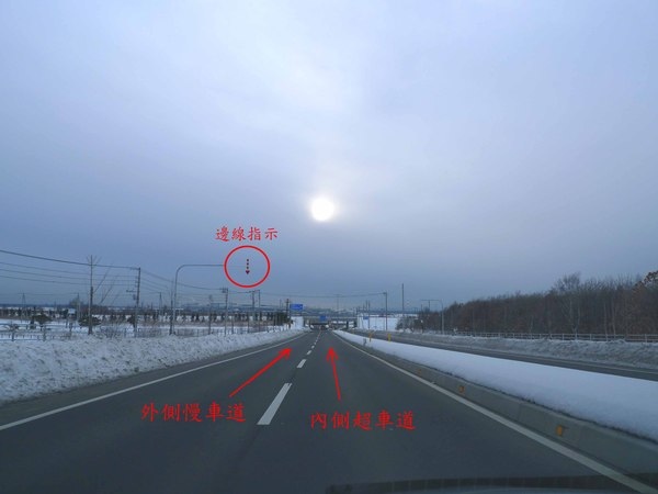 ↓大部分的道路都清理了很乾淨,若為雙線道,內側為超車道,外側為慢車道,建議盡量走慢車道。