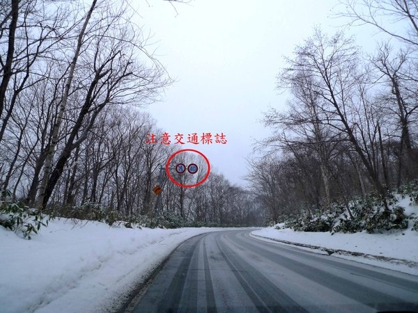 ↓當然也會遇到有雪的路面,盡量跟著車痕走,沒有車痕的部分有可能有較厚的結冰,會打滑。