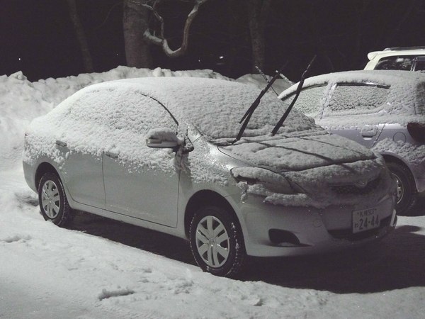 ↓一般在晚上停好車時,會把雨刷立起,以防第二天被冰黏在玻璃上。