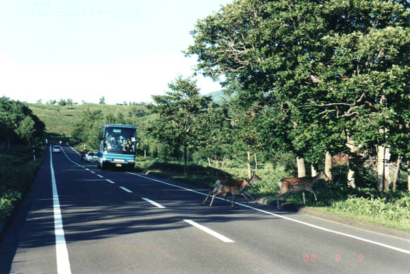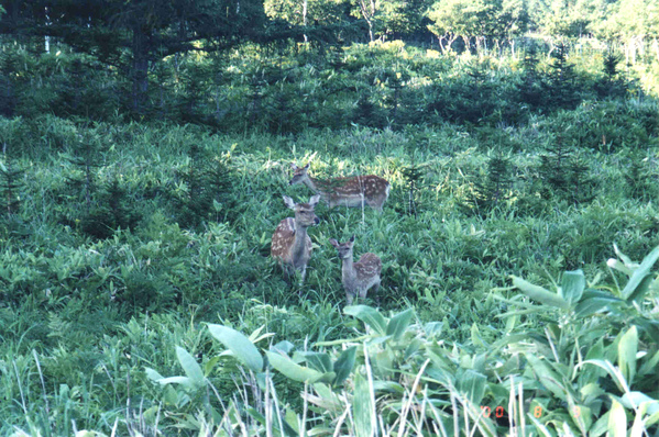 回程時遇到完全不怕人的"蝦夷鹿"家族