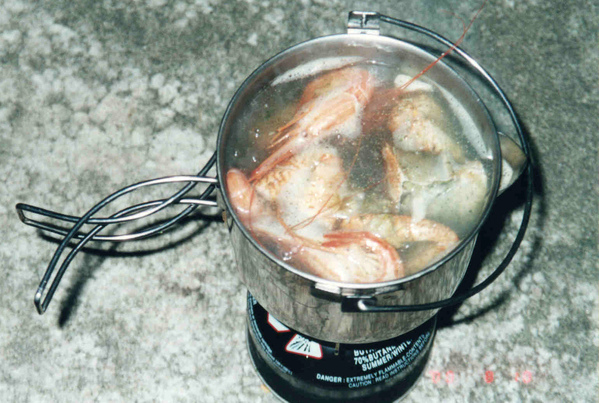 我們散步到"尾岱沼漁港"買了一隻毛蟹,八支活蝦,一共400円日幣