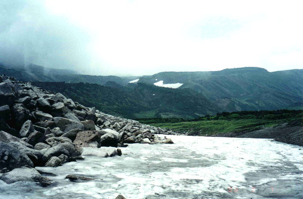 我們在美麗的雪溪等待雲霧飄走,先架好腳架準備合照,遇到三個人利用雪溪的低溫在做布丁