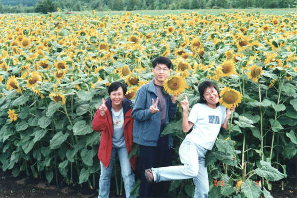 到了平地路段看到一小片向日葵花田 現在果然是向日葵的季節 花開得比臉還大